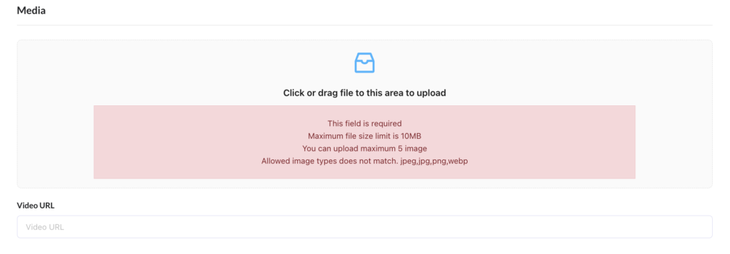 - Only images can be uploaded, videos will need to be linked to another source (YouTube, Vimeo etc.)