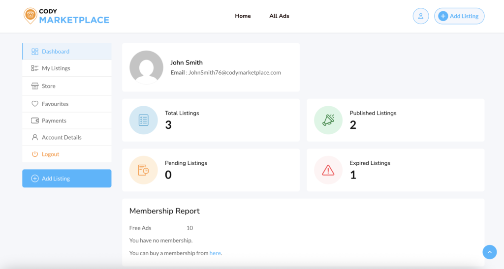 1. Go to the “Add Listing” page