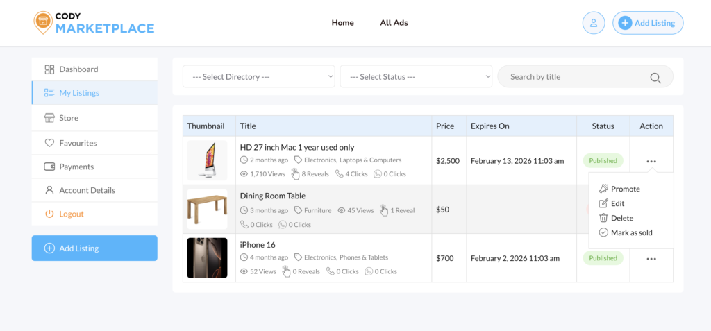 6. View Your Listings
